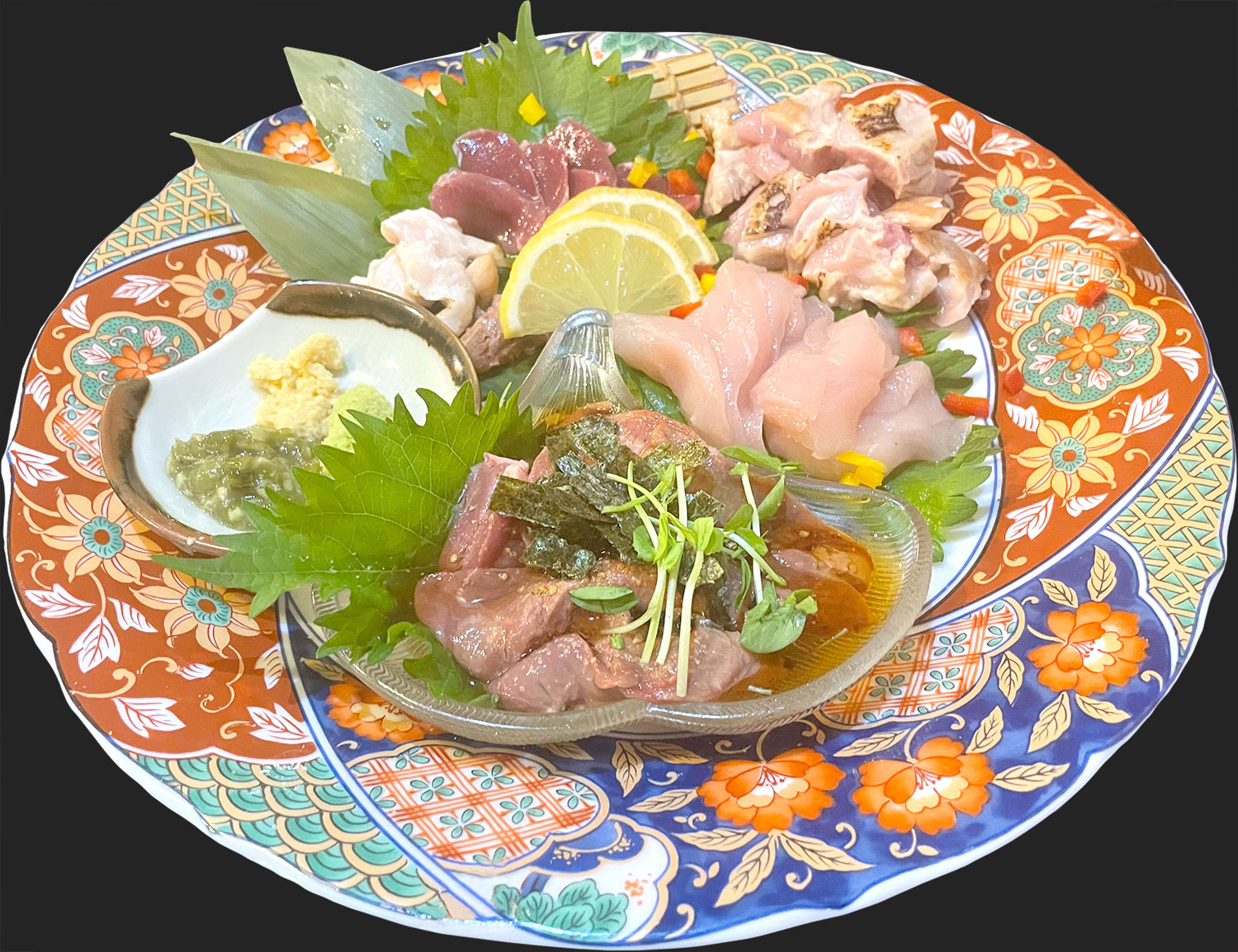 We offer sasami (tenderloin), kimo (liver), and momo (thigh),